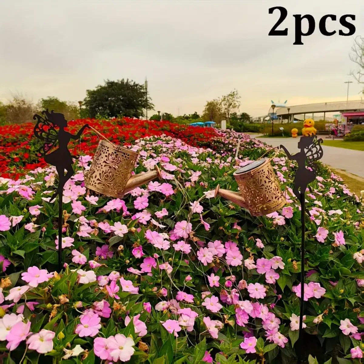 Ouddy Decor Fairy Garden Decor With Solar Watering Can, Metal Statues With Hanging Lanterns Waterfall Lights Silhouette Waterproof For Lawn Pathw